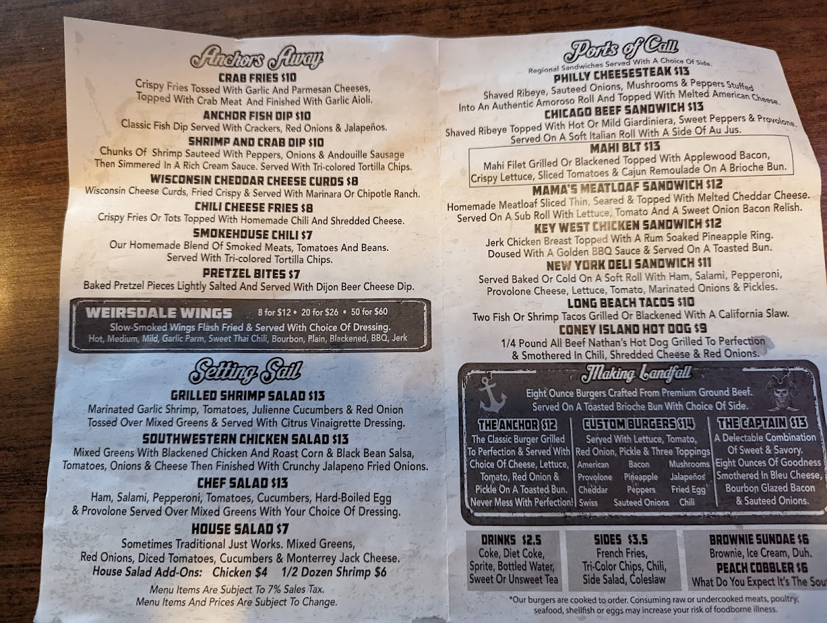 At The Anchor on Sunset Harbor, you'll discover a menu that tantalizes the taste buds while exuding a warm, inviting atmosphere. Located in serene Summerfield, Florida, this gem is perfect for friends and families seeking flavorful bites. The Anchors Away star, the Crab Fries, combines crispy fries with garlic, Parmesan, and succulent crab meat, drizzled with garlic aioli, all for just $10. Meanwhile, the Sailing into Flavor section features hearty dishes like the Southwestern Chicken Salad and Grilled Shrimp Salad, both priced at $12, offering a nourishing blend of textures and flavors.